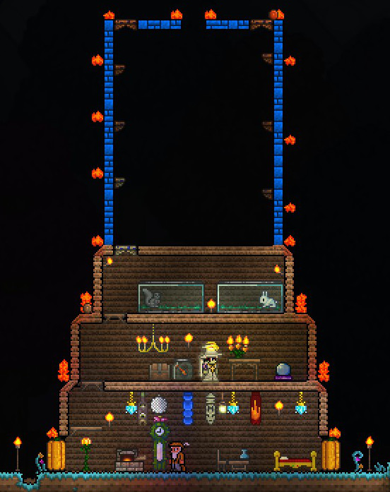 Gestern war der Content für mich praktisch komplett neu! Wir sind (mit sehr vielen toden!!) durch den Tempel und haben schlussendlich den Golem tatsächlich ein paar mal besiegt. Außerdem konnten wir die meisten auch noch mit aktueller Rüstung ausstatten und gegen Ende hat Jay noch eine „Arena“ für Duke Fishron gebaut. Der Kampf war allerdings härter als gedacht und da wir nur einen Köder hatten, konnten wir ihn noch nicht bezwingen.